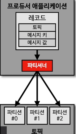 - producer가 data를 전송할 때, 토픽의 어느 파티션에 전송이 될 지는 파티셔너가 결정을 한다.